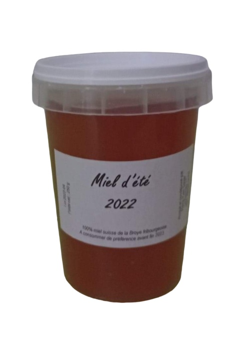 Miel foncé et cristallisé provenant principalement de miellat de feuillu et de fleurs d'été (trèfle blanc, acacia, ronce, ...) Conditionné en pot plastique de 500 g Lot 2022-04 récolté le 12.06.2022 CHF 12.50 -