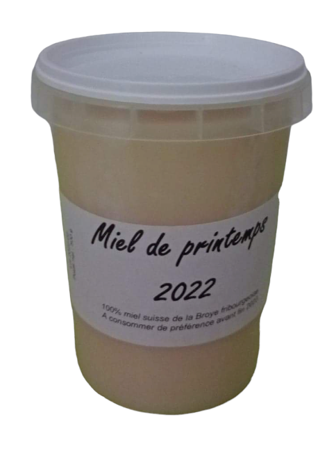 Miel clair et crémeux provenant principalement du colza, du pissenlit et du cerisier. Conditionné en pot plastique de 500 g Lot 2022-02 récolté le 19.05.2022 CHF 12.50 -